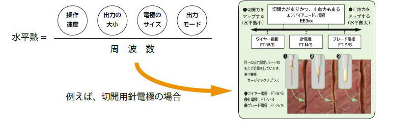 - 金属メス同等の切れ・組織侵襲を実現させるラジオ波モノポーラ出力特性(切開 、剥離 、切除)