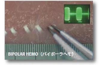 さらにラジオ波バイポーラ機能はエネルギーの集中性により、過剰な出力(ワット)を必要とせず、フォーセップ先への組織付着を少なくし、組織損傷を最小限に抑えることで頻回なクリーニングの手間を省きます。またイリゲーション機能を追加することで、世界でも類を見ない「ラジオ波イリゲーションバイポーラ機能」が実現可能です。